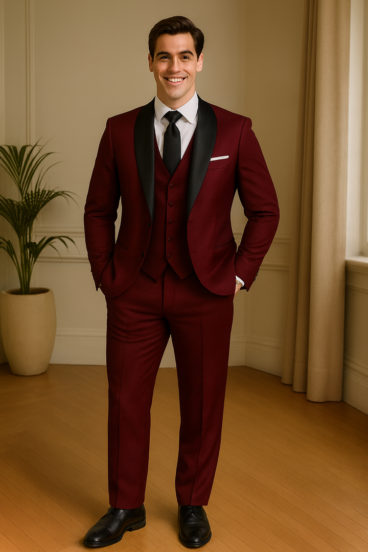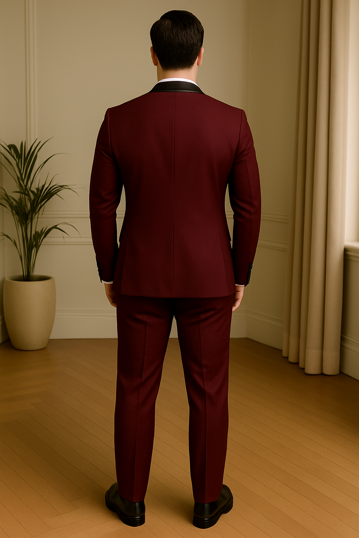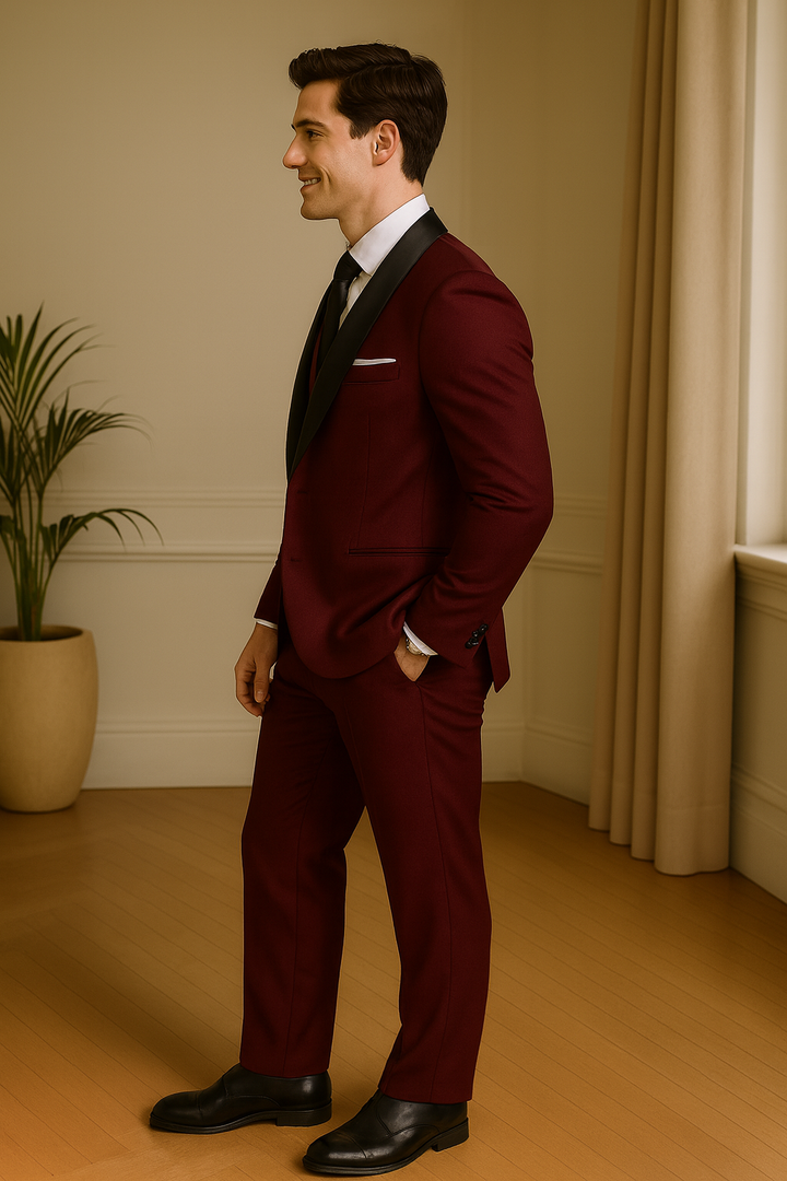 Men's Business Shawl Lapel Burgundy Color Two Button Party Suits