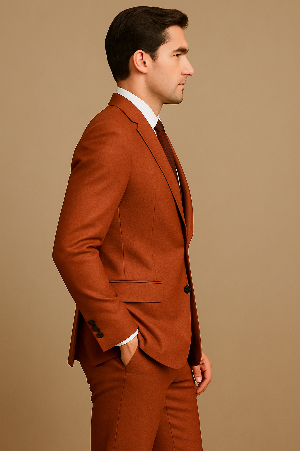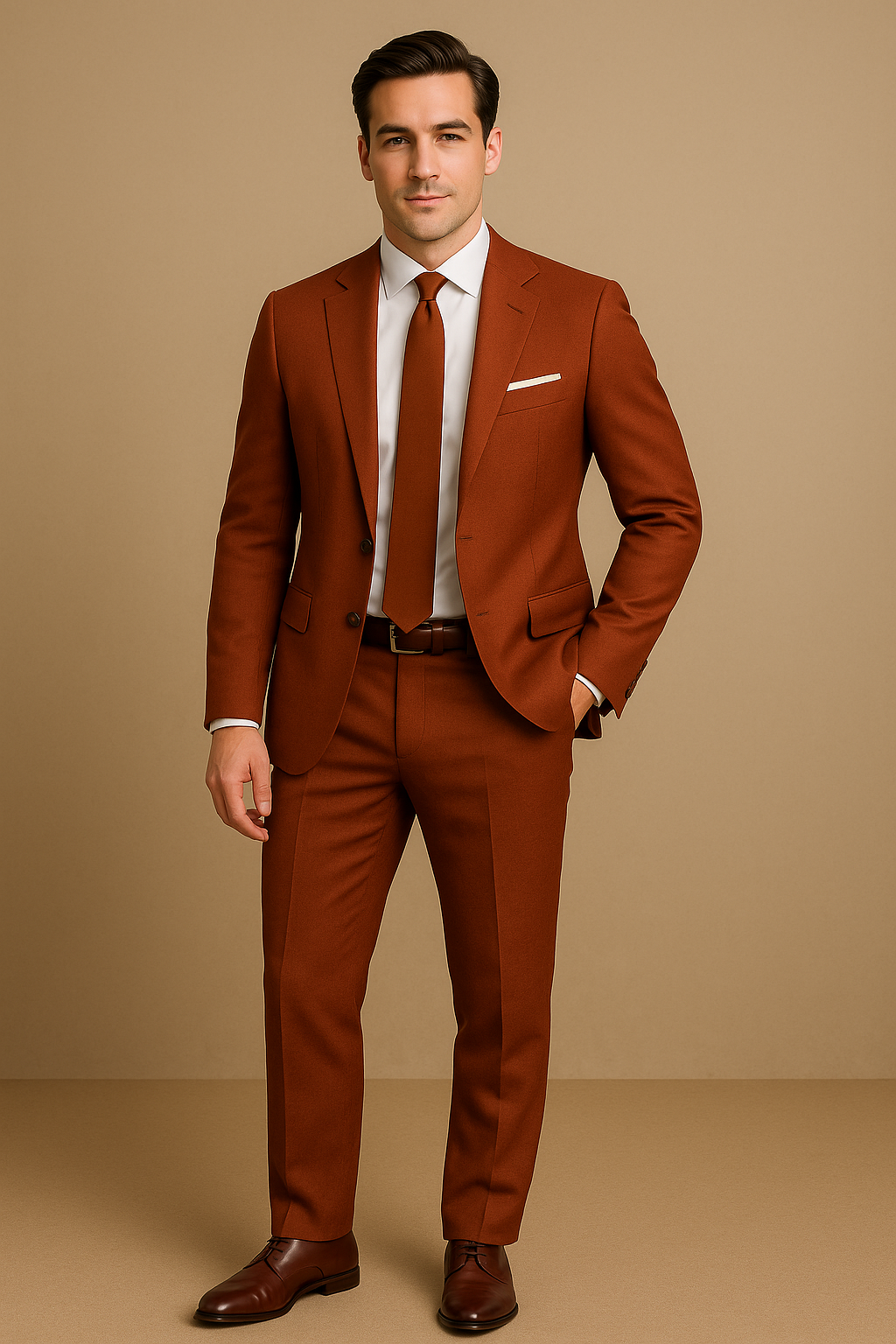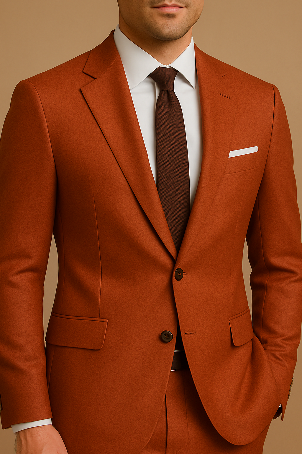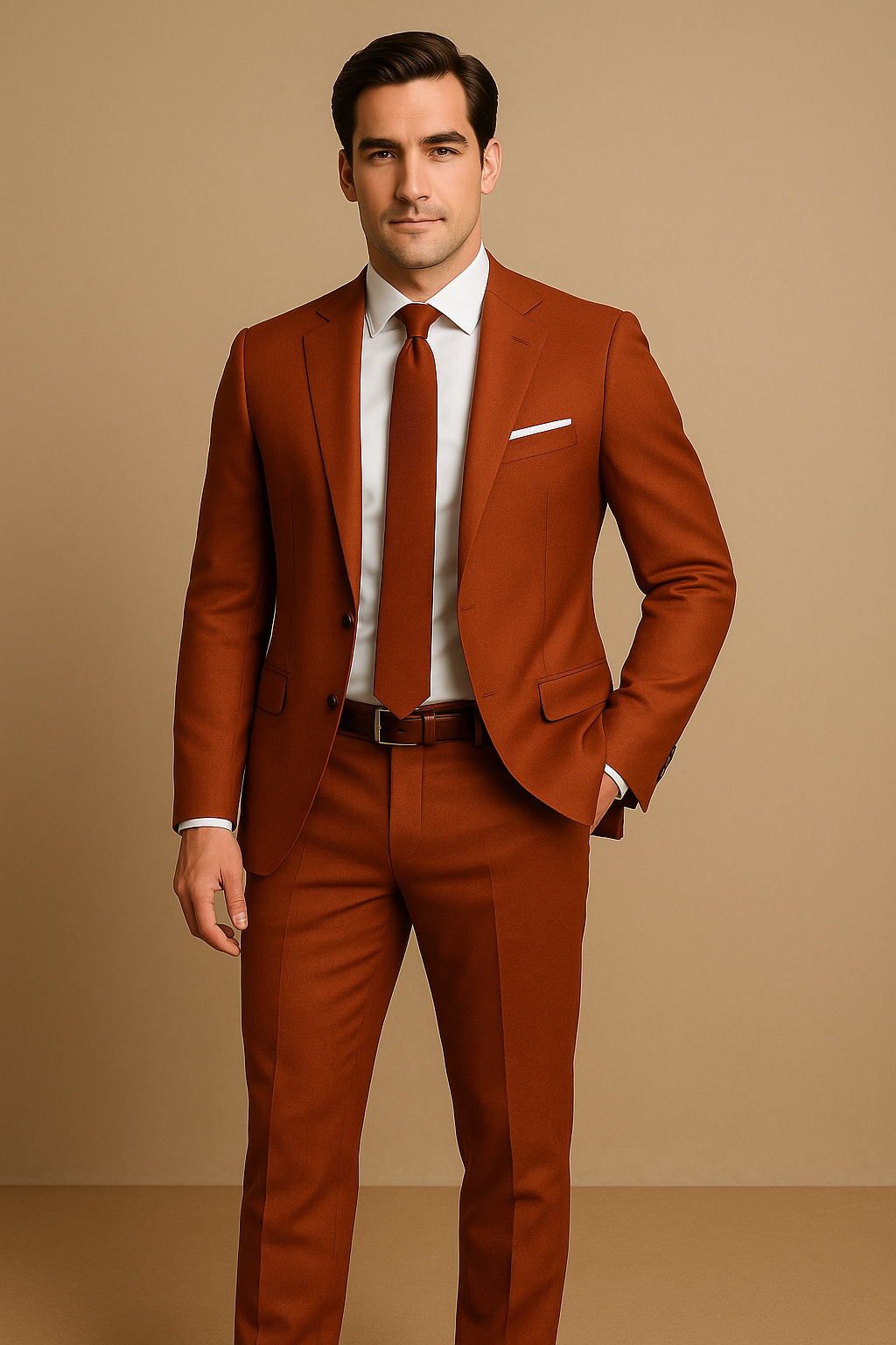 This Men's Business Suits Designer Wedding Dinner Party Wear Suits is the perfect choice for any special occasion. The Rust Orange color adds a touch of sophistication, while the designer craftsmanship ensures a perfect fit. Make a lasting impression with this special gift for him.
