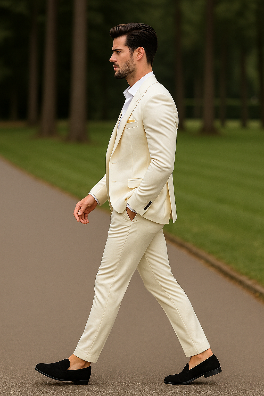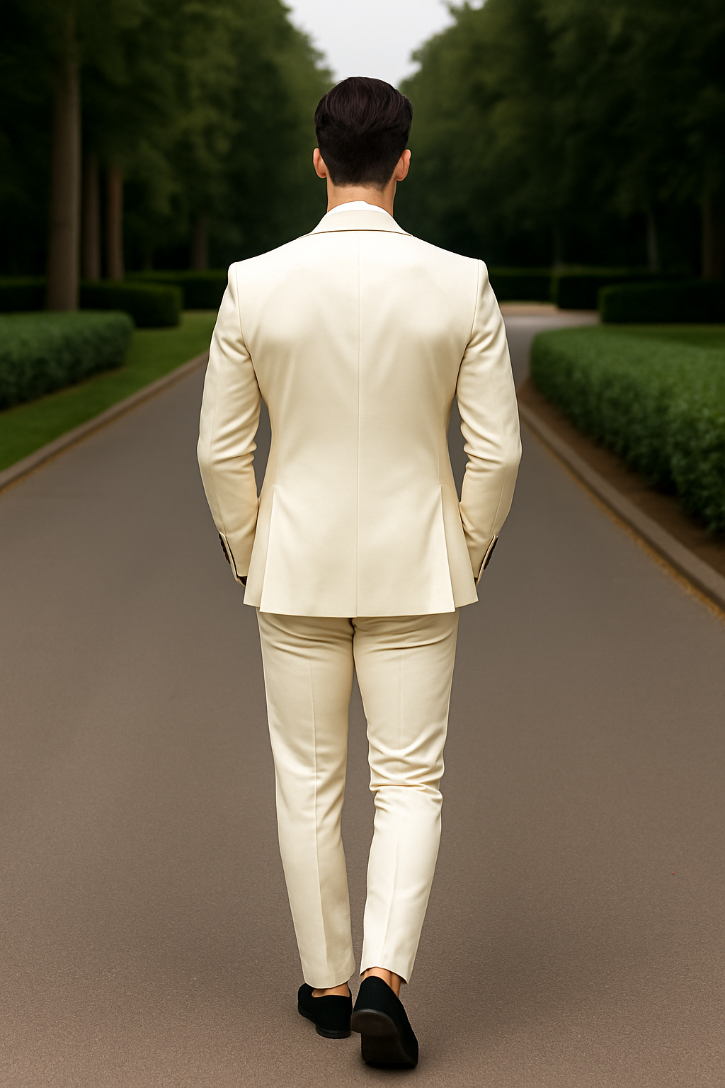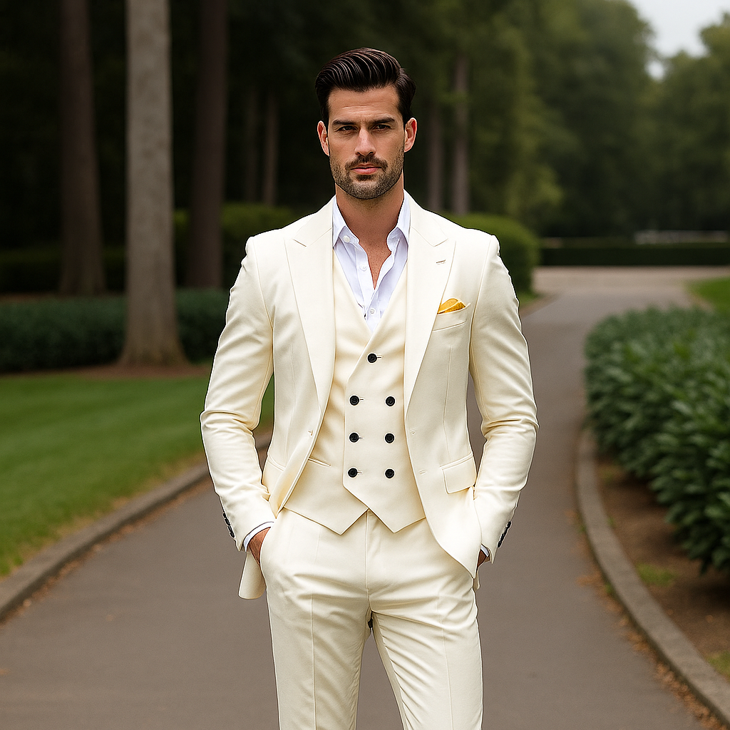 Men's Business Dinner Partywear Ivory Cream Color 3 Piece Suits