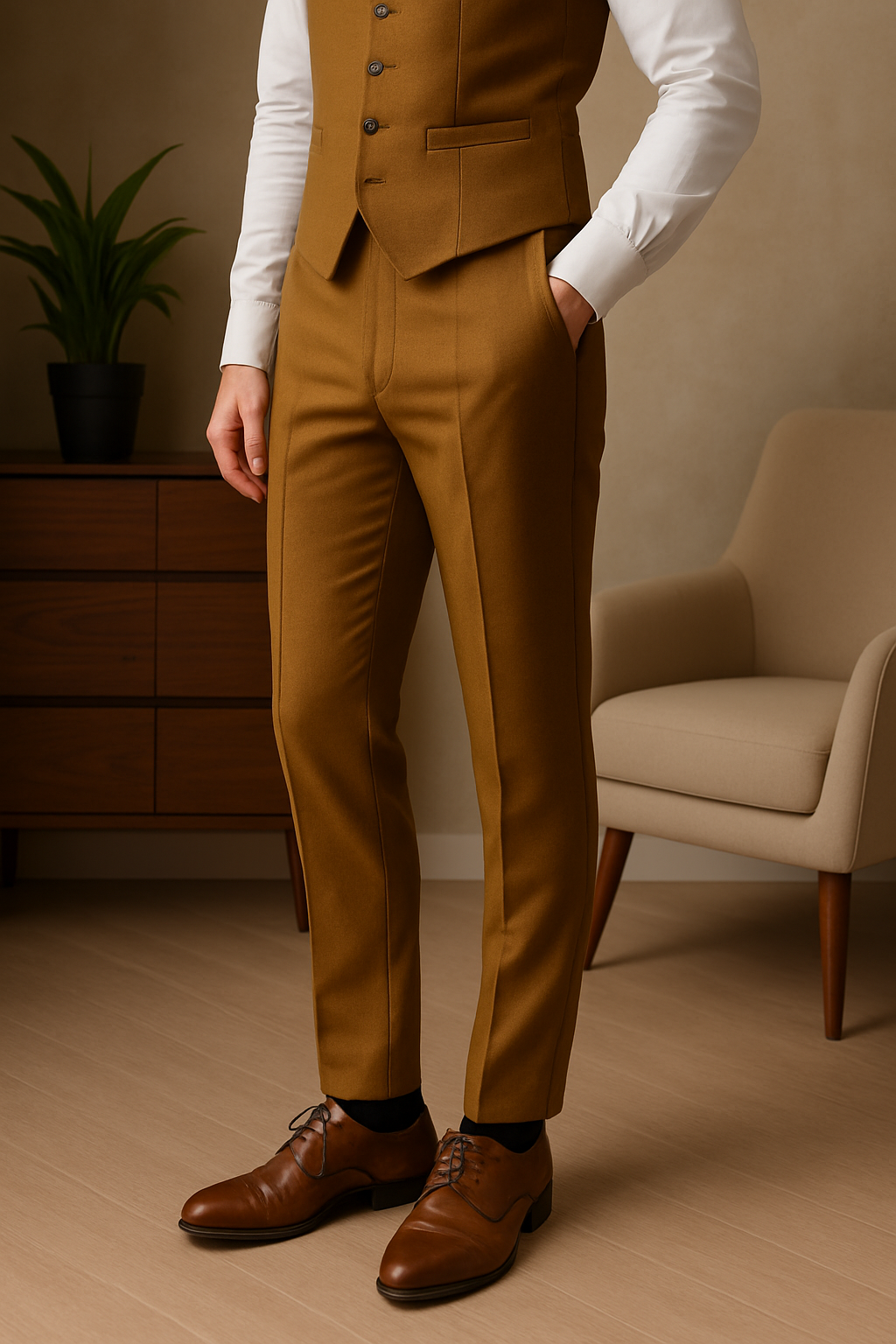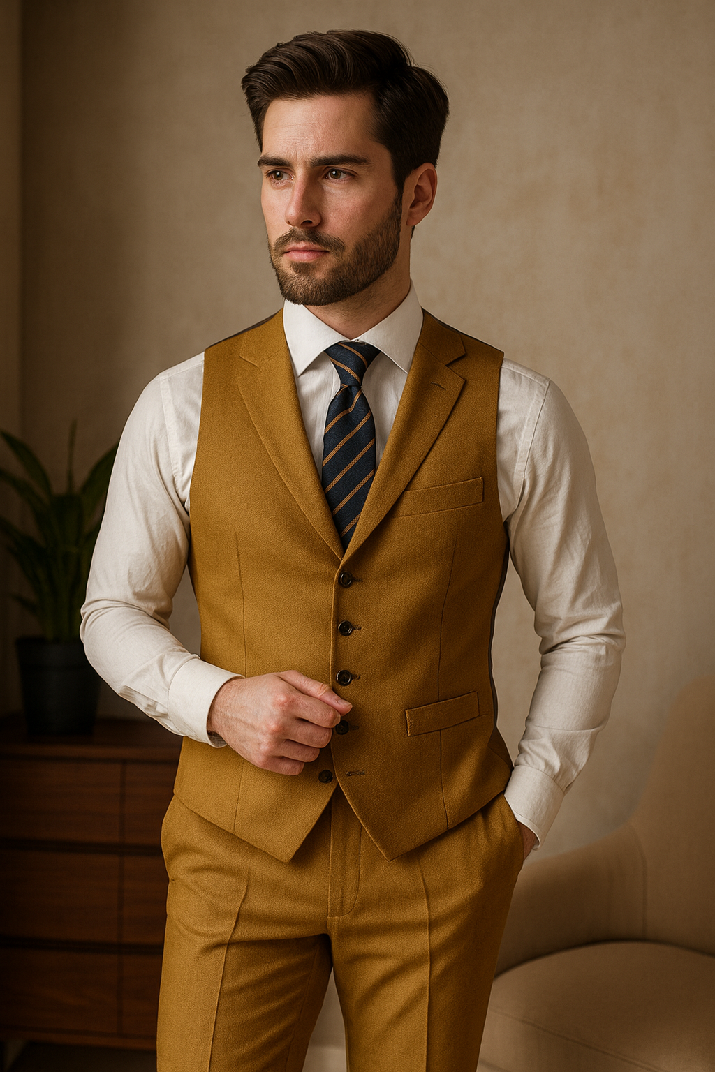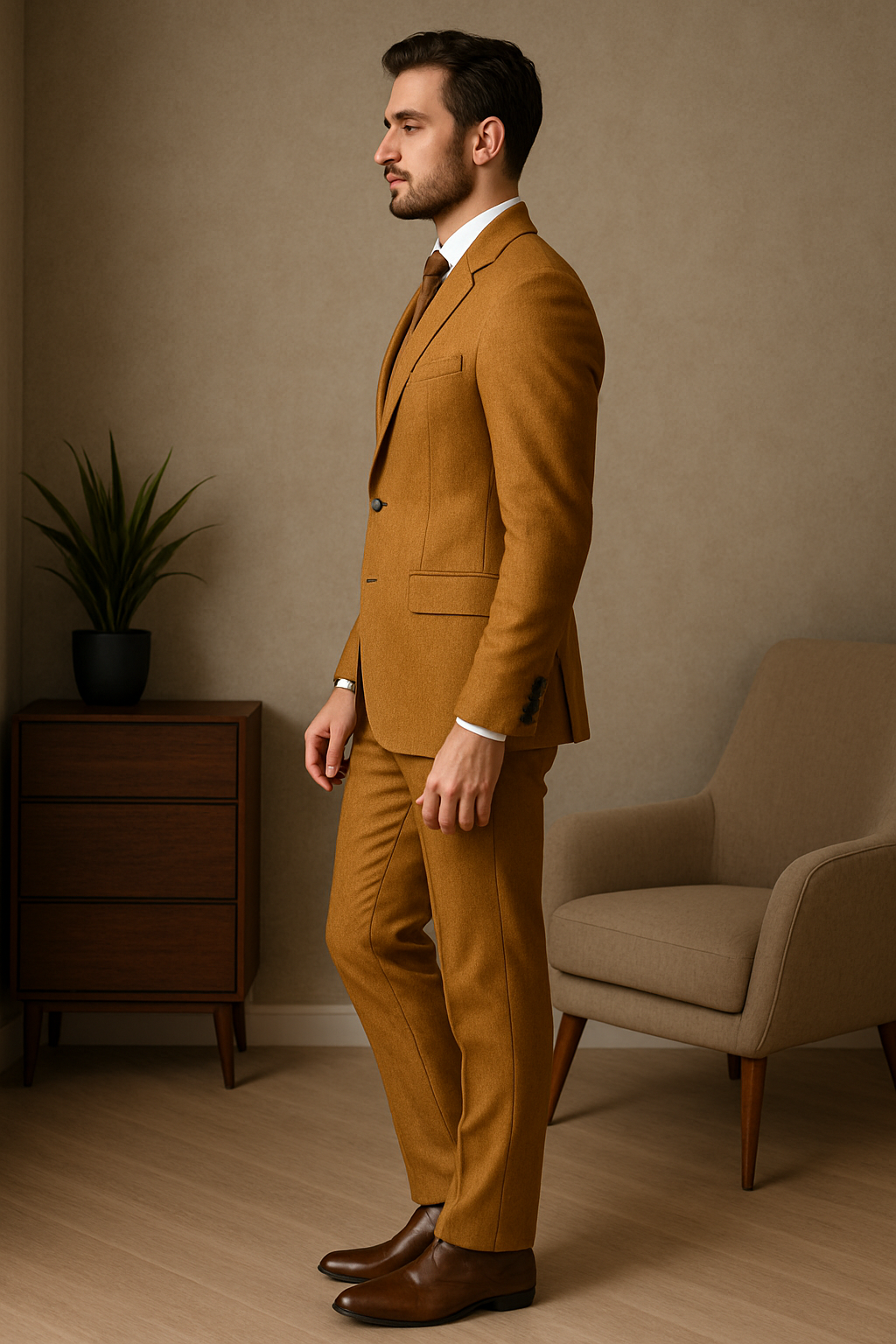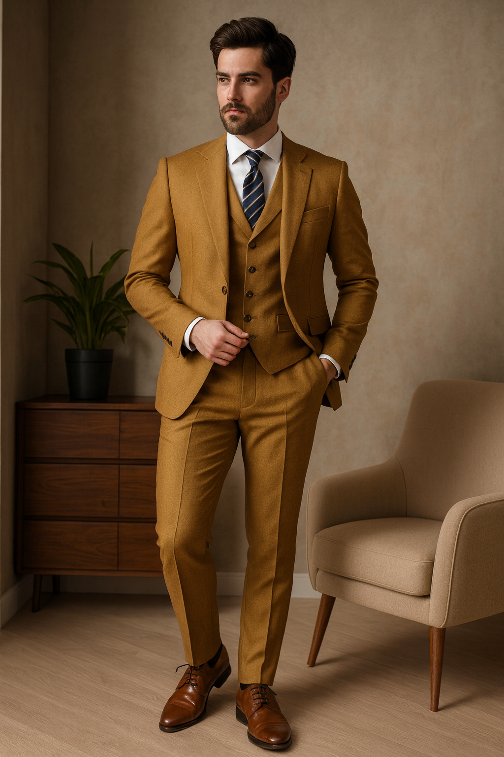 Men's Business Dinner Partywear Mustard Yellow 3 Piece Suits