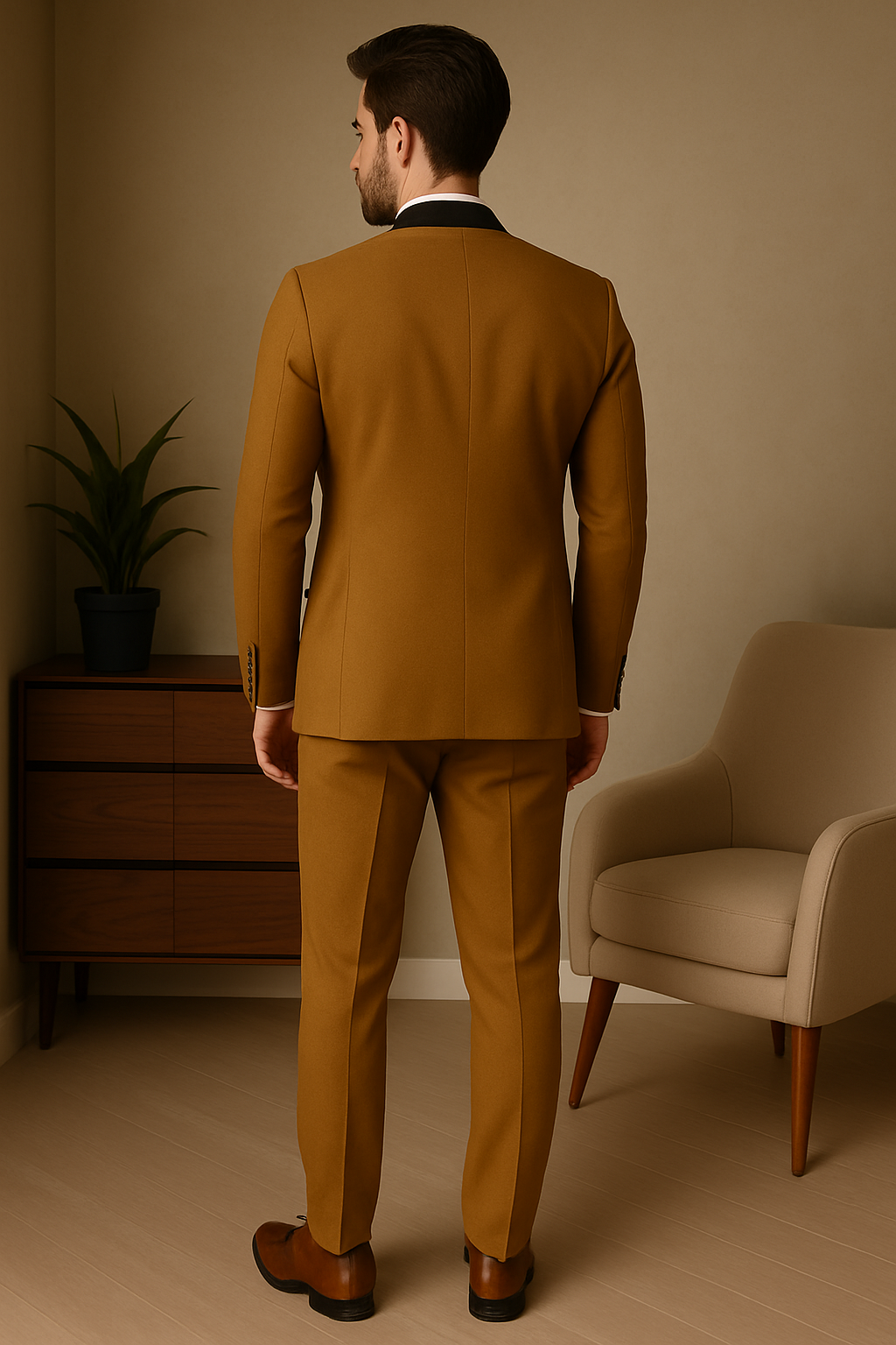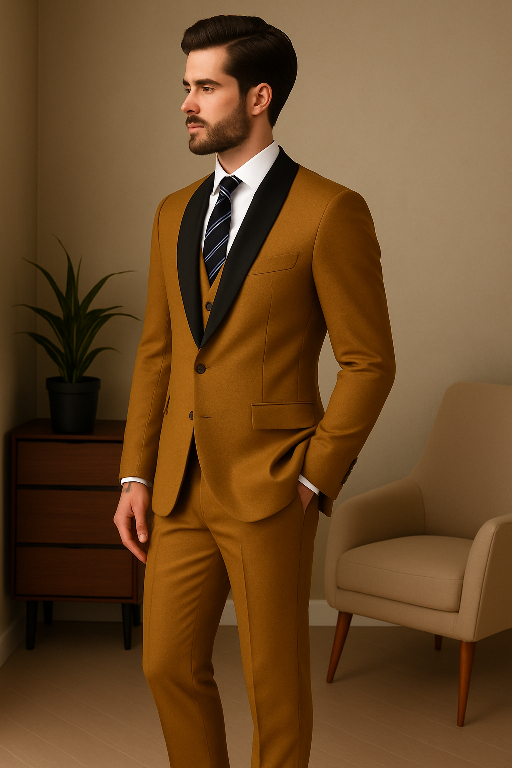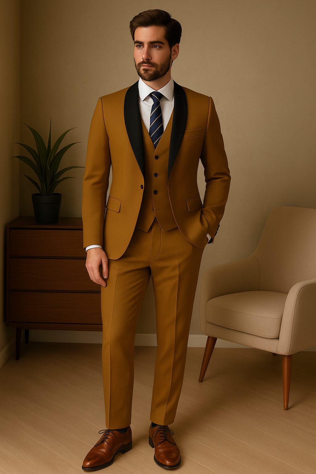 Men's Business Dinner Partywear Mustard Yellow Shawl Lapel 3 Piece Suits