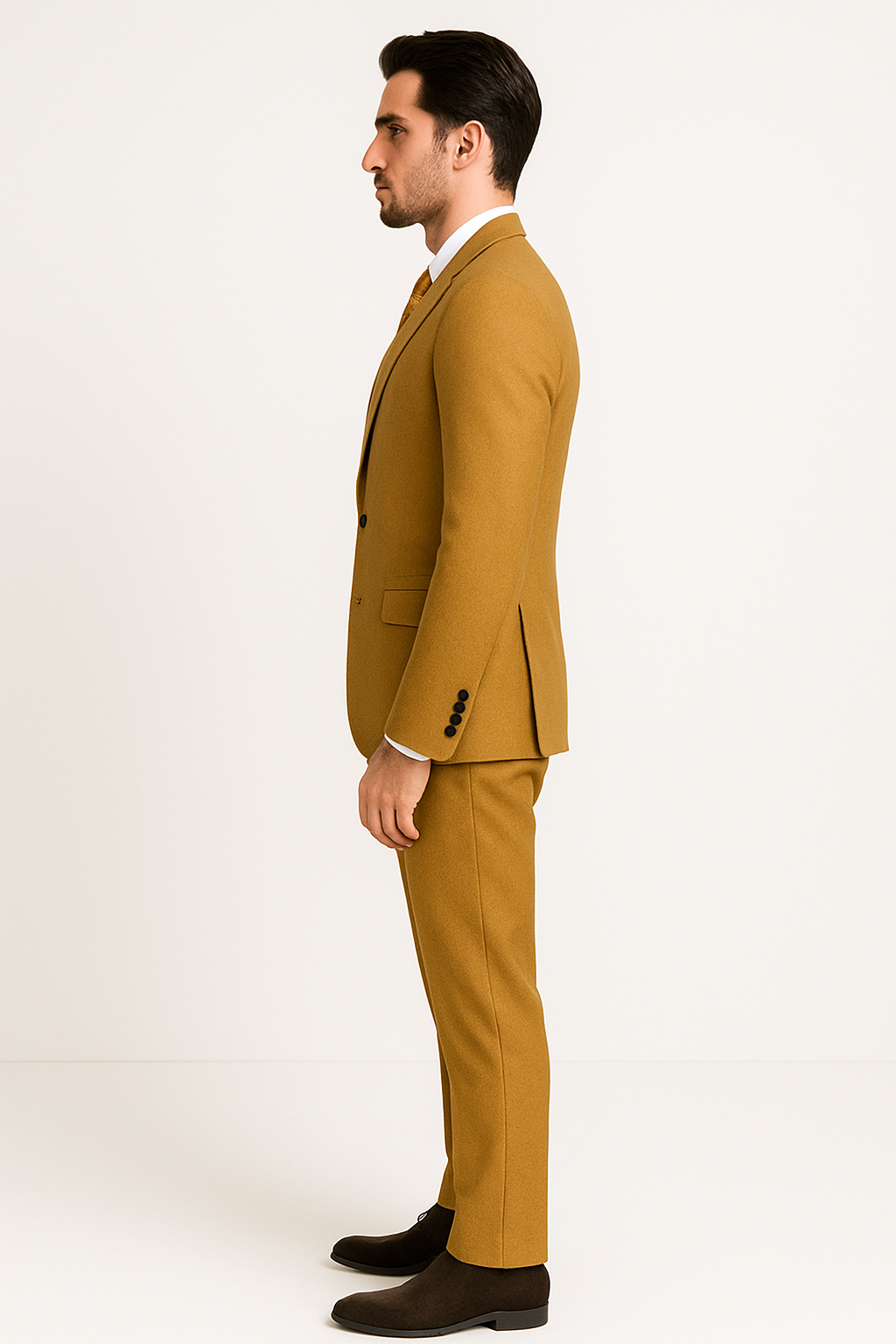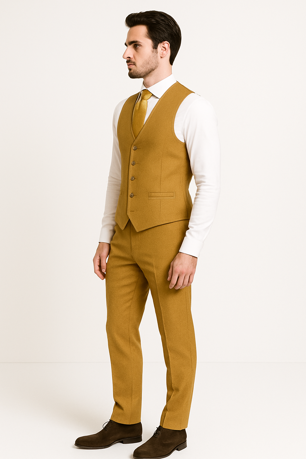 Men's Business Formal Partywear Mustard Yellow Color 3 Piece Suits