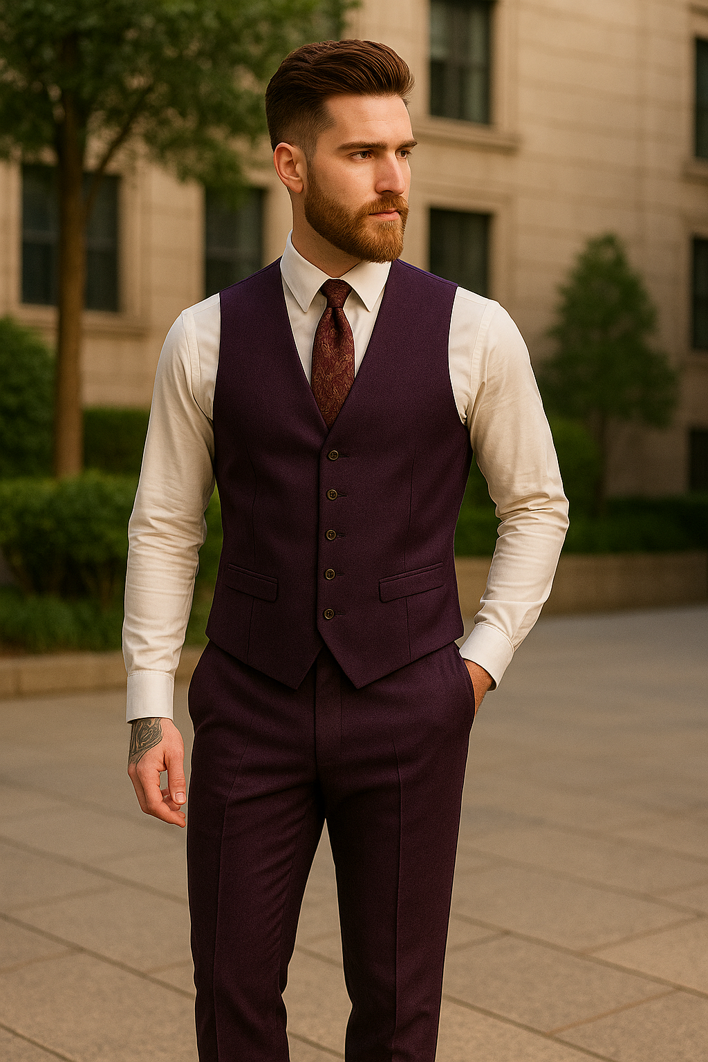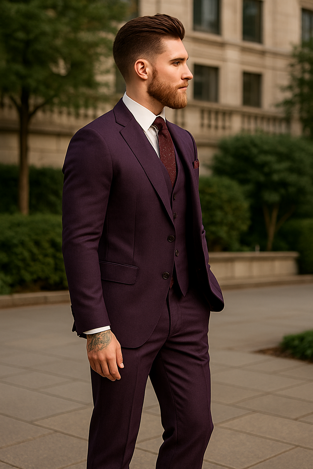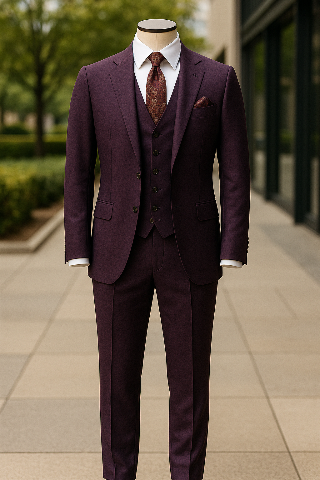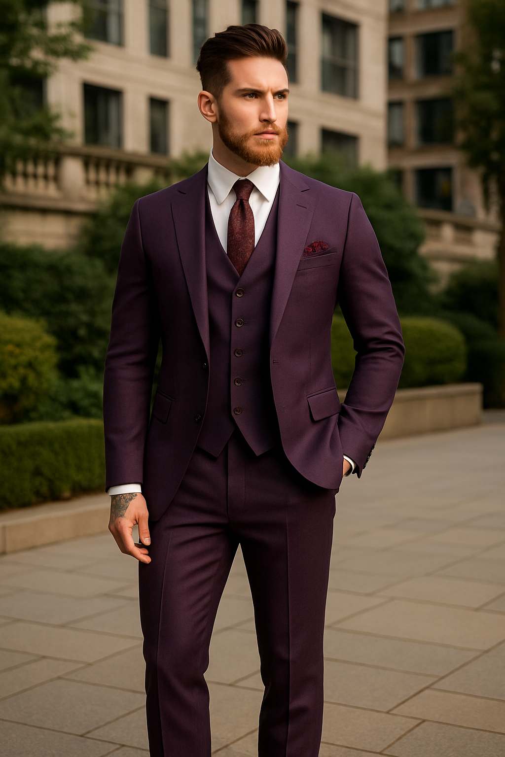 Men's Business Formal Partywear Wine Color 3 Piece Suits