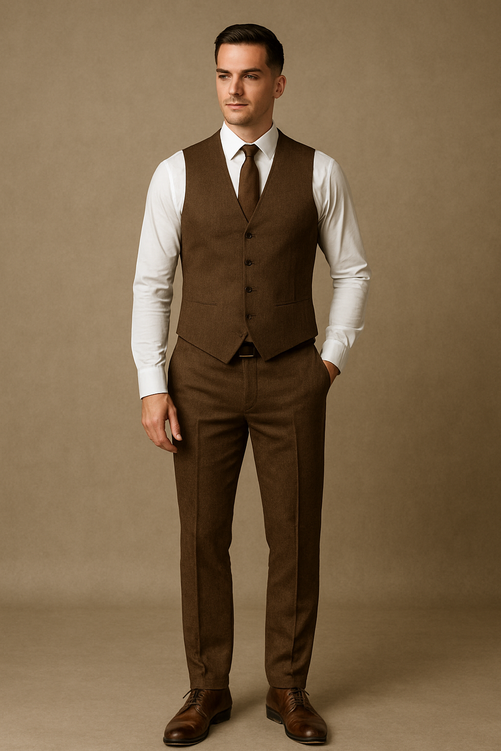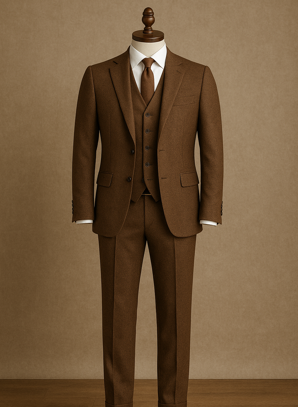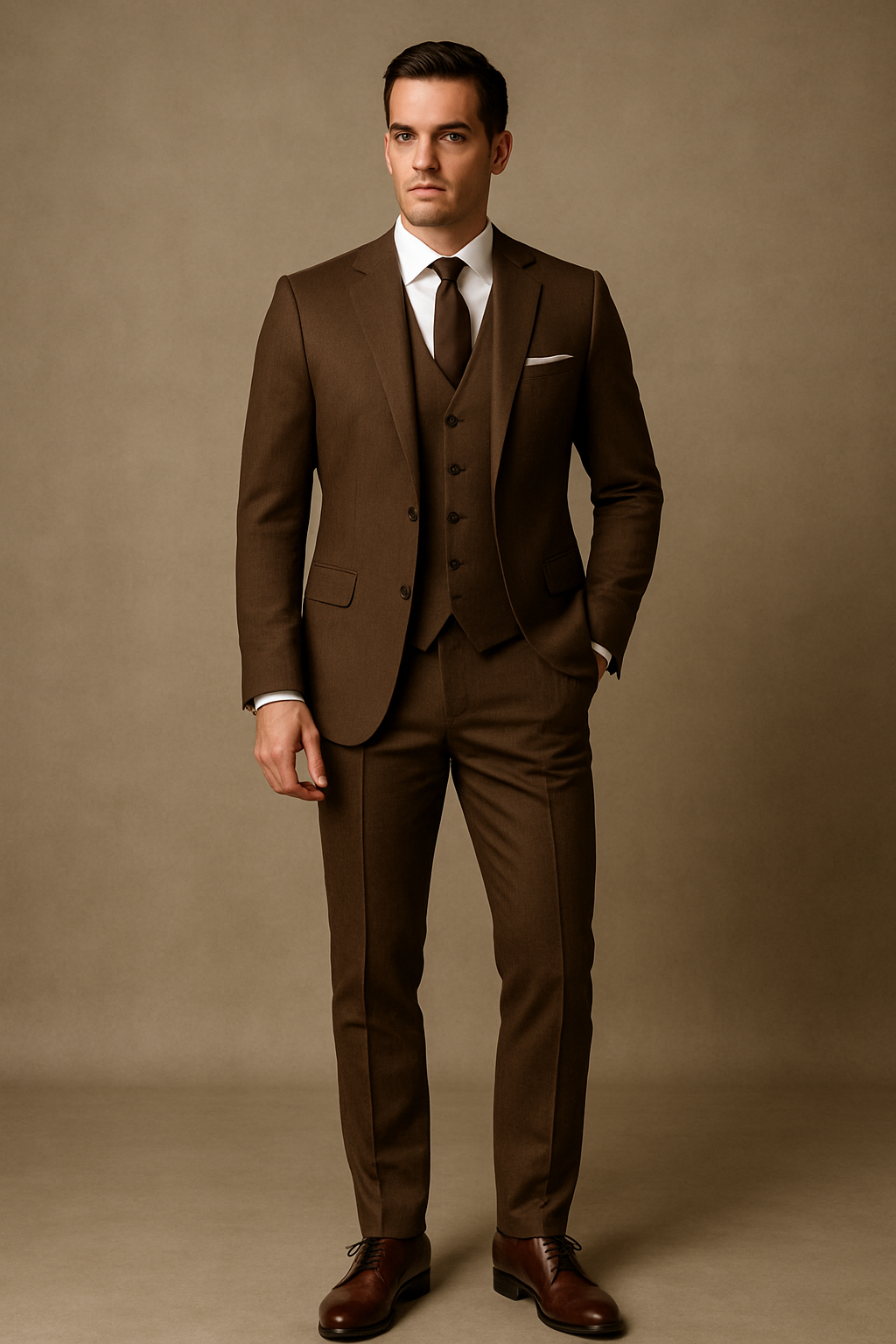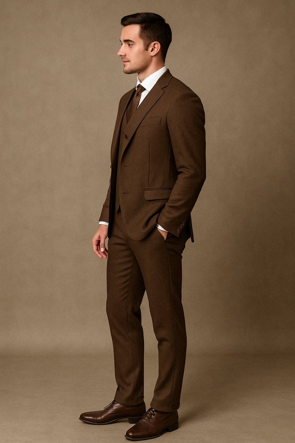 Men's Business Peak Lapel Brown 3 Piece Suits