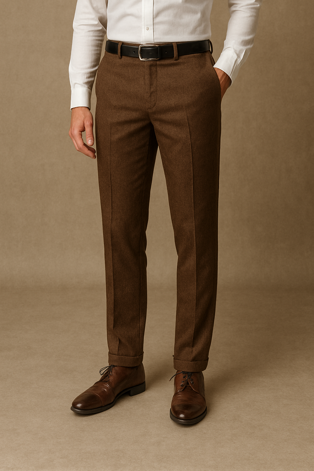 ●A classic straight-leg trouser featuring two convenient side pockets and a two back pocket, combining functionality with timeless style."