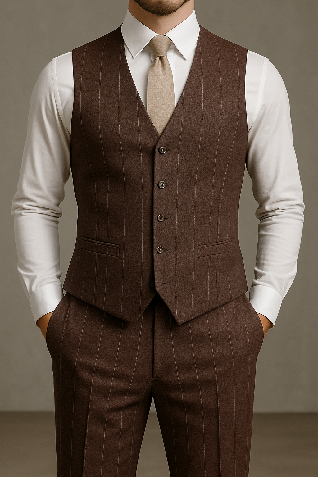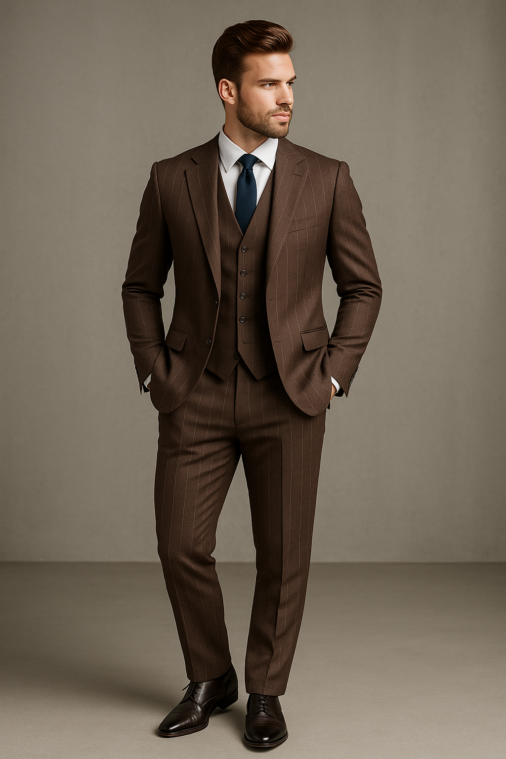 Men's Business Peak Lapel Brown lining 3 Piece Suits