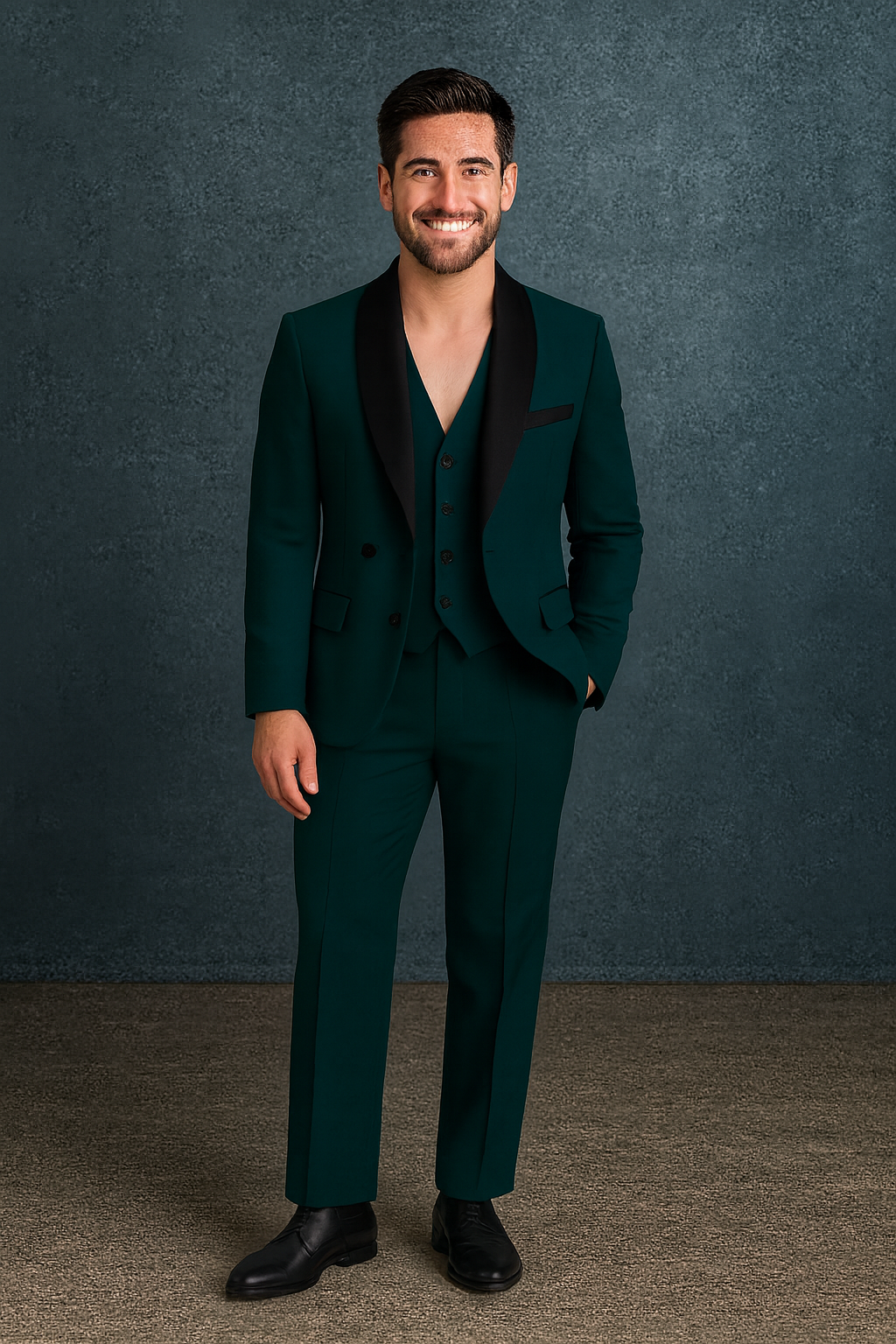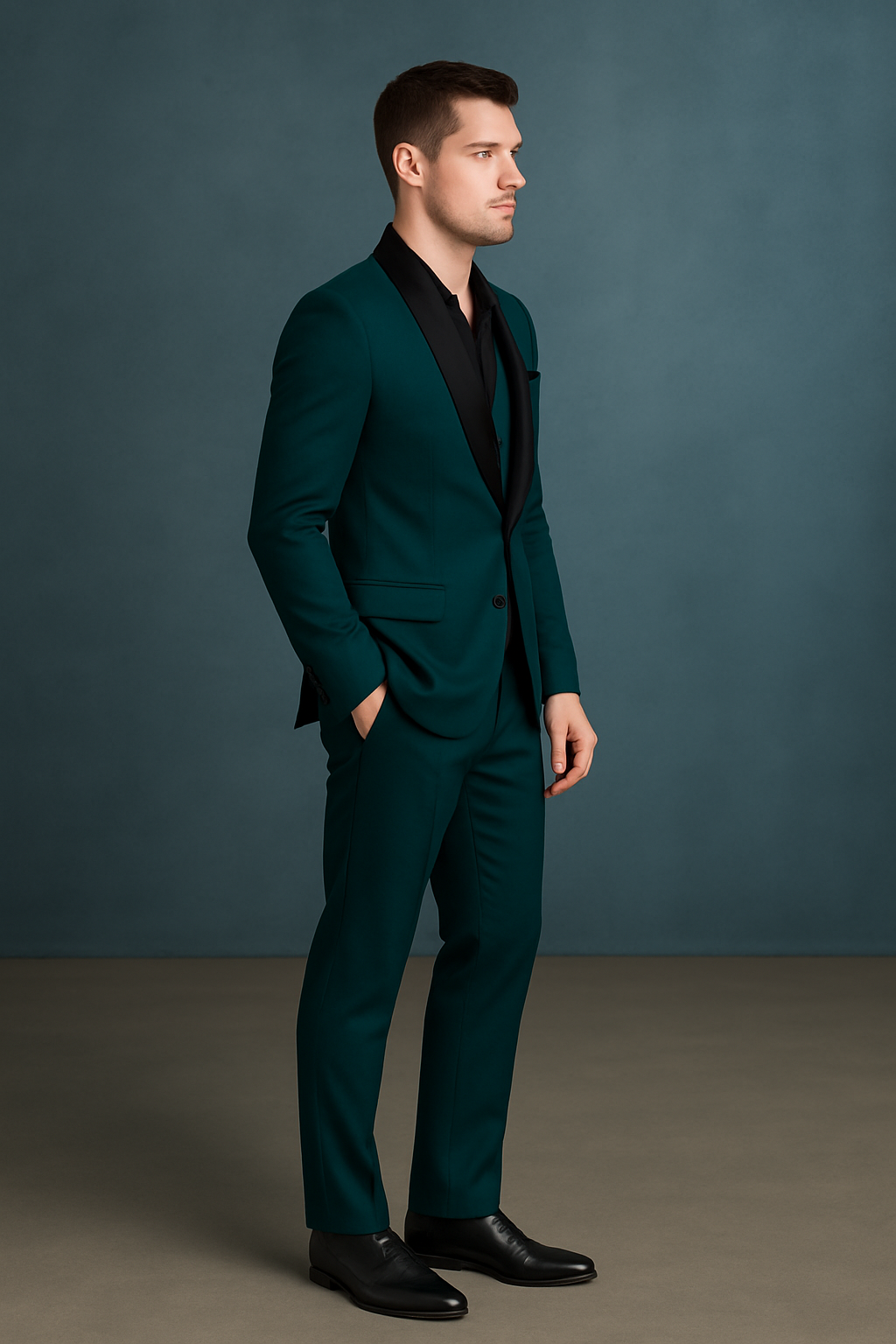 Men's Business Shawl Lapel Single Button Slim Fit Teal 3 Piece Suits