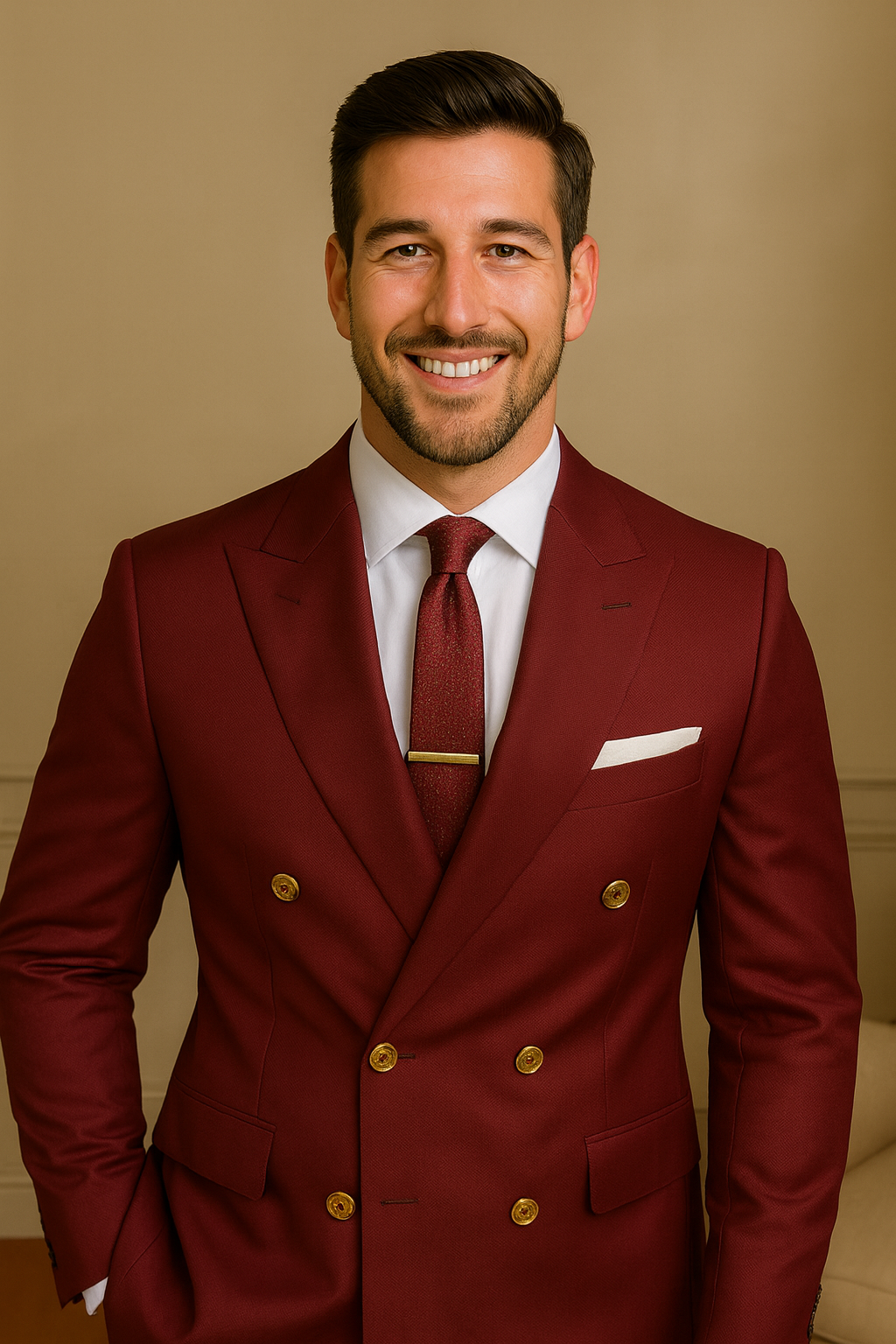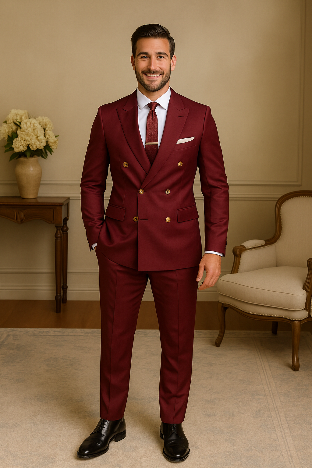 Men's Double Breasted 2 Piece Mehroon Color Business Date Night Suits