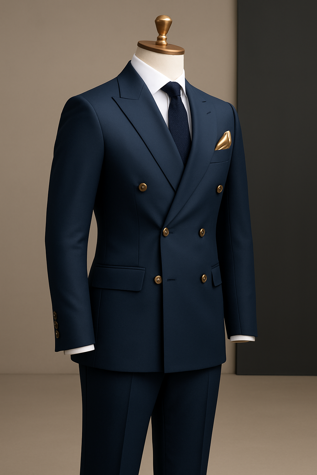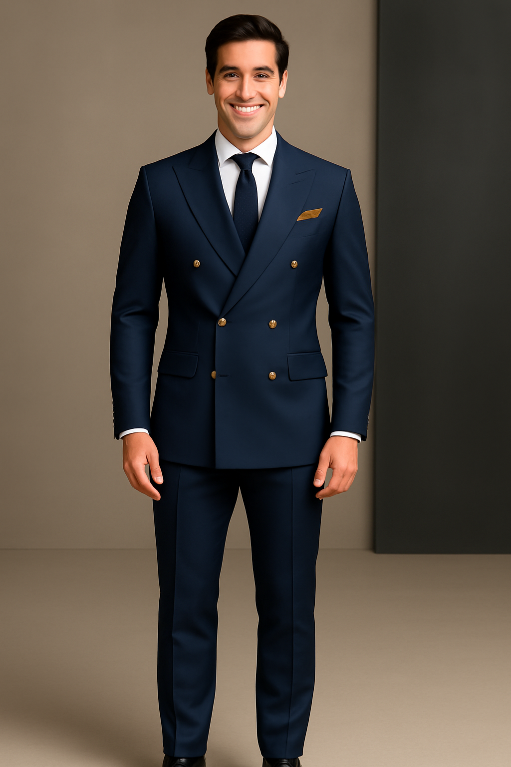 Men's Double Breasted Navy Blue Color Business Suit