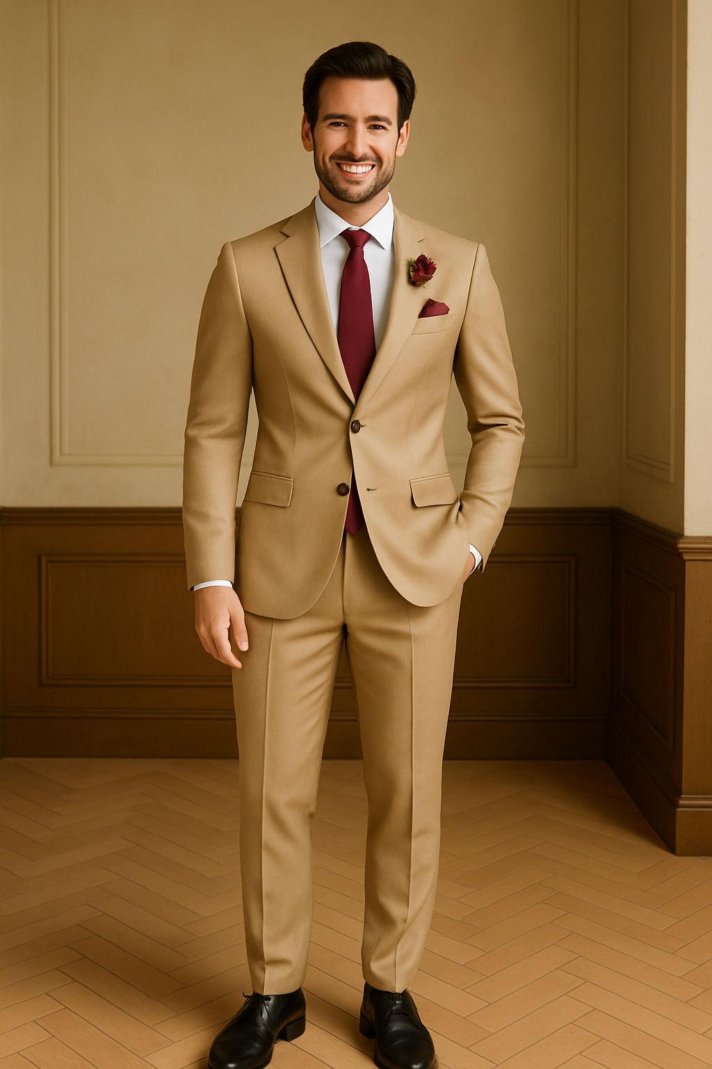 his Men's Business Suits Designer Wedding Dinner Party Wear Suits is the perfect choice for any special occasion. The Beige color adds a touch of sophistication, while the designer craftsmanship ensures a perfect fit. Make a lasting impression with this special gift for him.