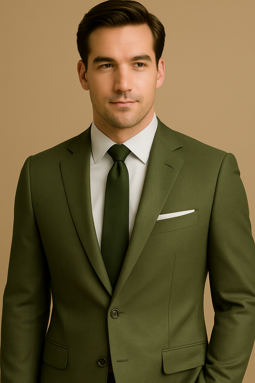 Men's Tuxedo Khaki Green Color 2 Piece Suit