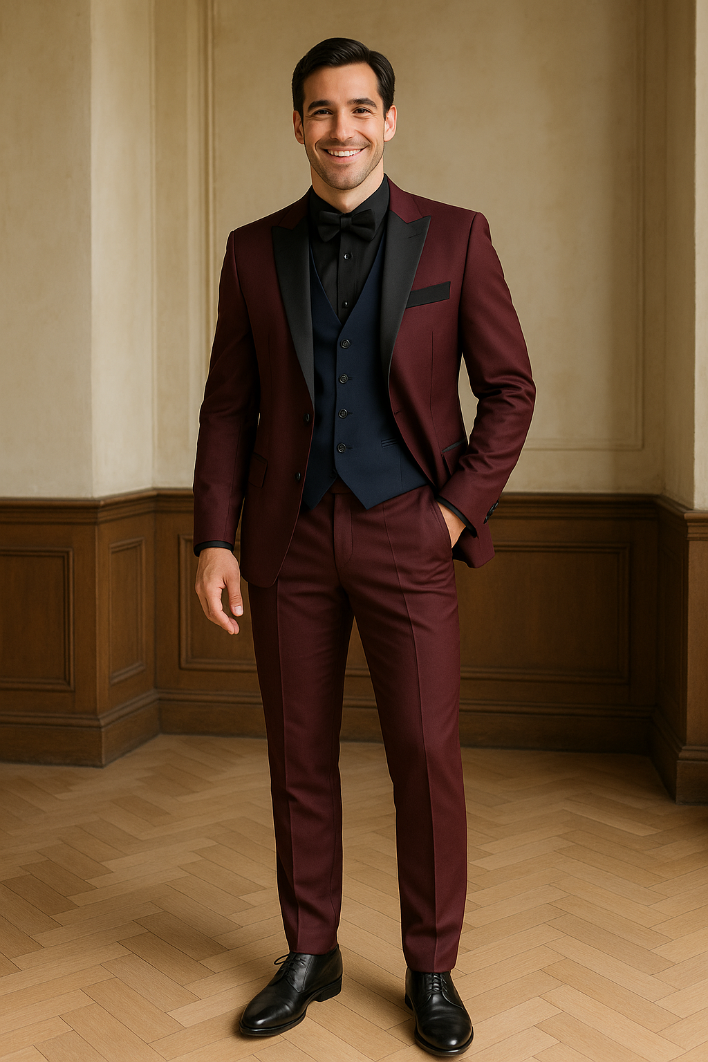 Men's Tuxedo Peak Lapel Burgundy Mehroon Color Suit
