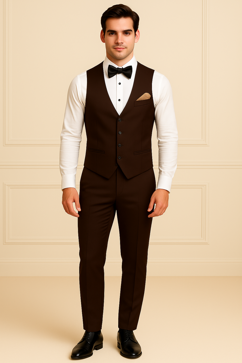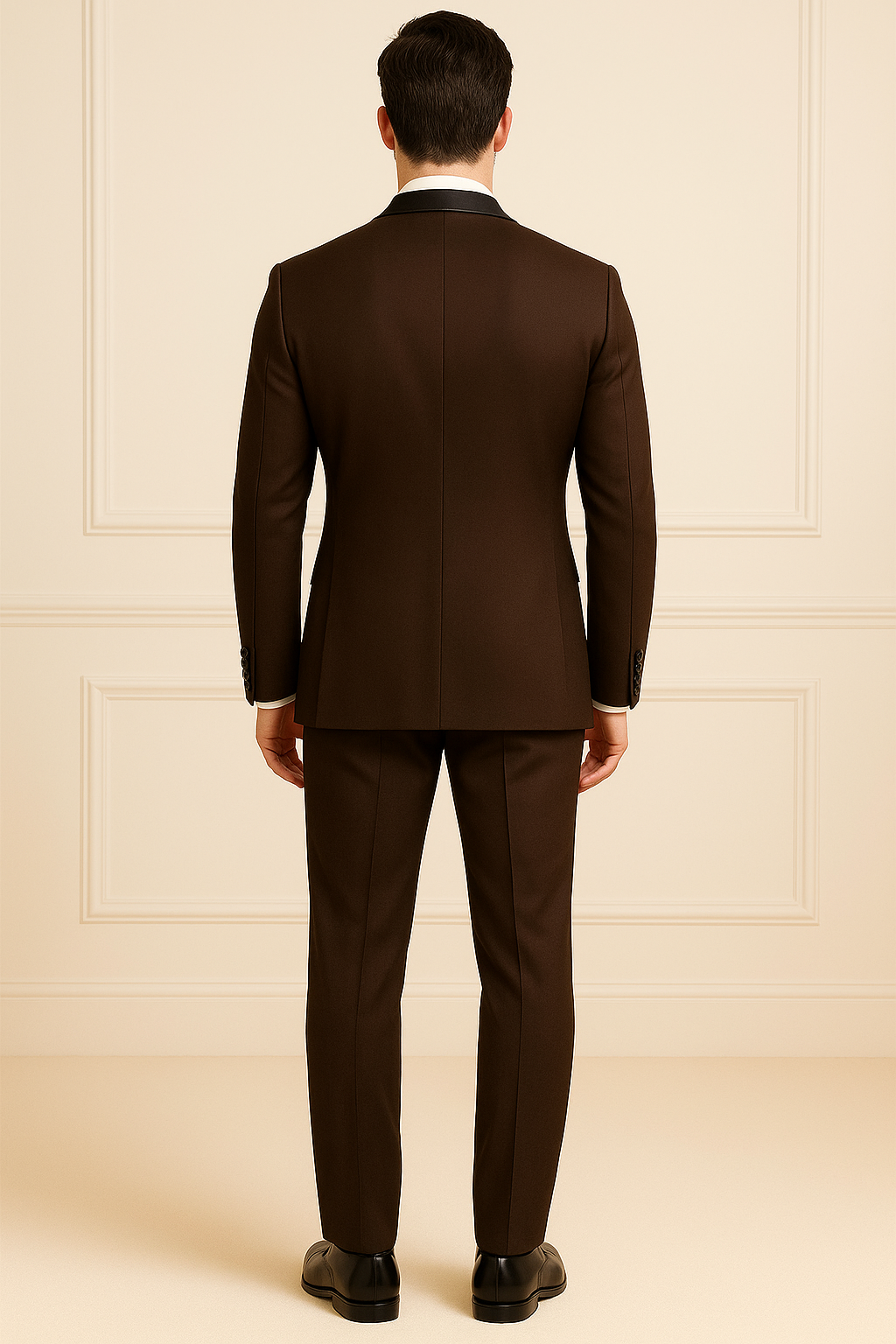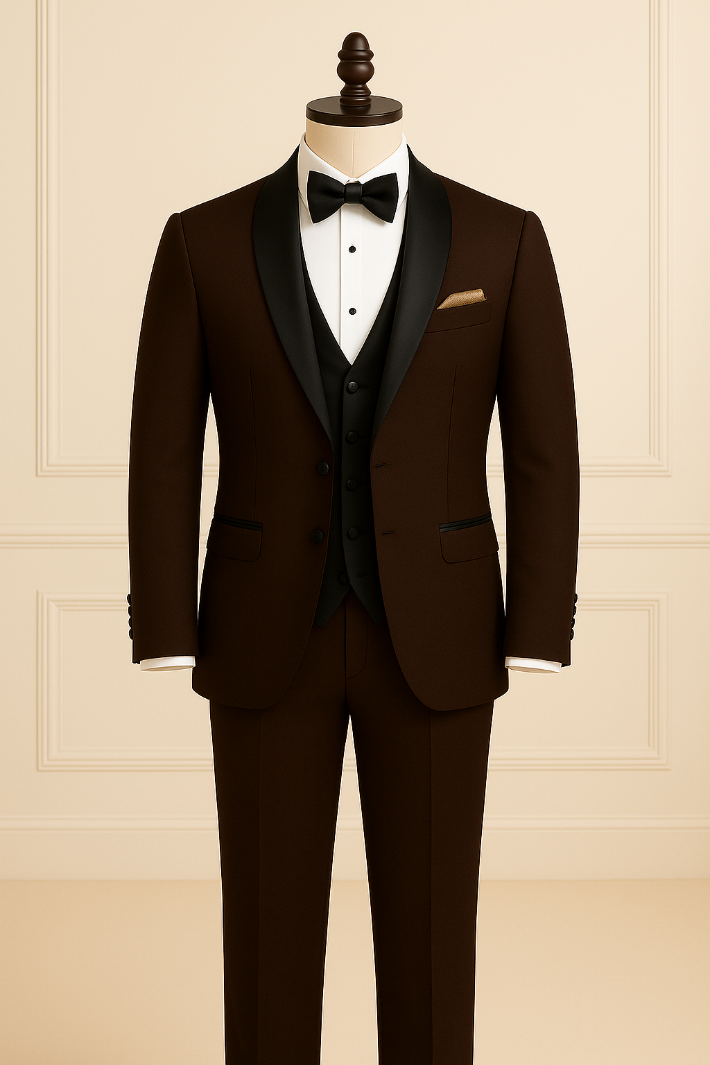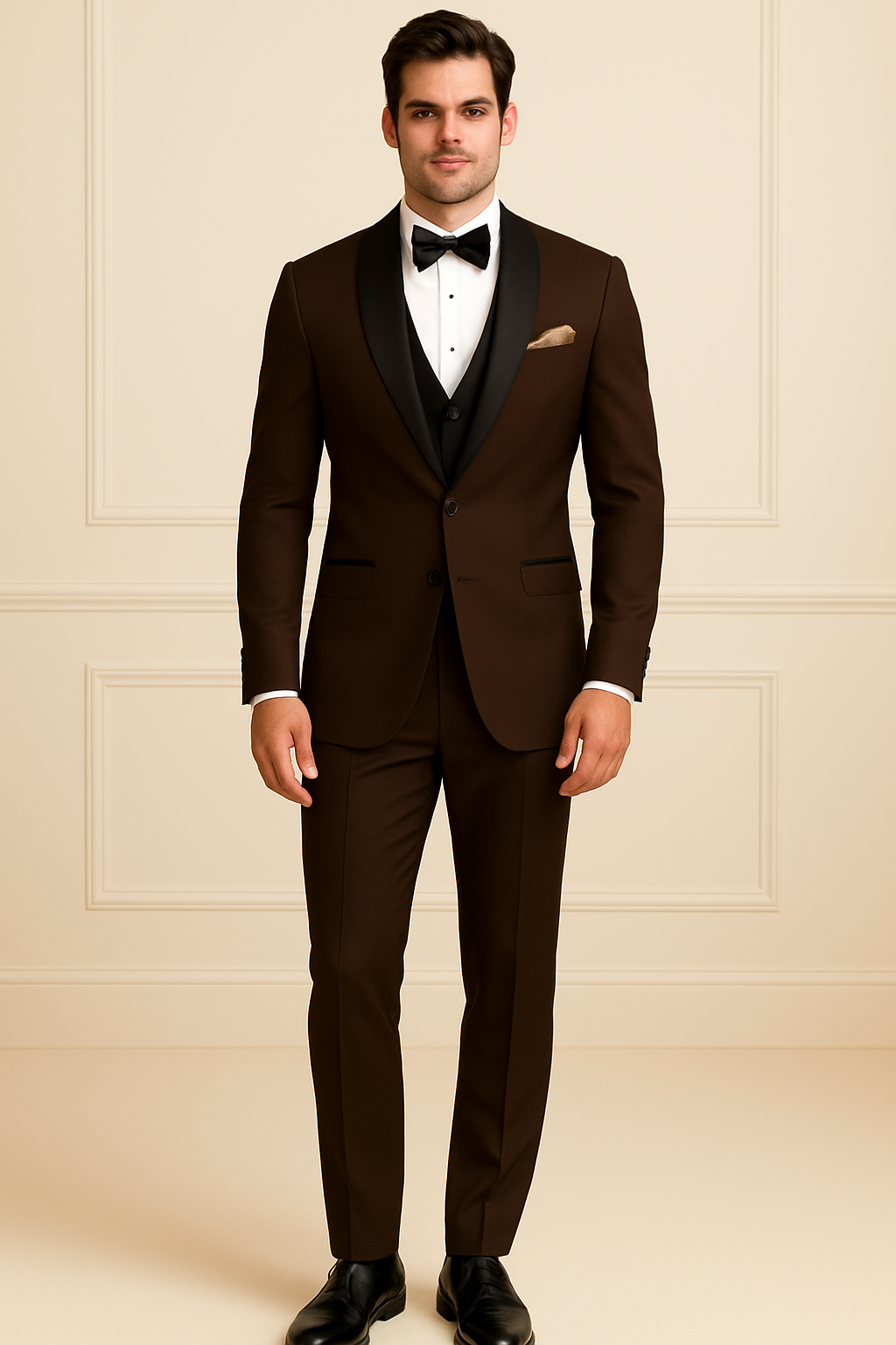 Men's Tuxedo Shawl Lapel Chocolate Brown Color 3 Piece Suit